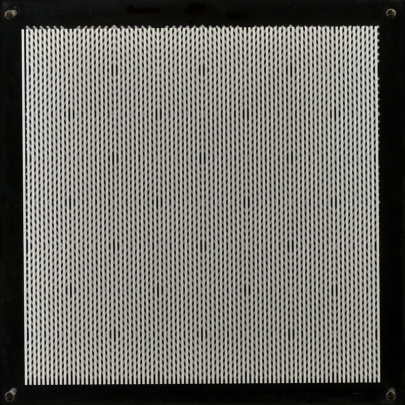 € 22 000,- Lineárna interferencia 4. 1966. Kombinácia techník. 50 cm x 50 cm x 10 cm. Viedeň 2014
