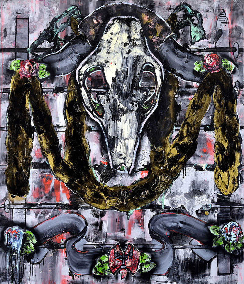 € 2 800,- Agnus Dei. 2016. Olej na vrecovine. 150 x 200 cm. (133. jarná aukcia výtvarných diel, 07.03.2017)