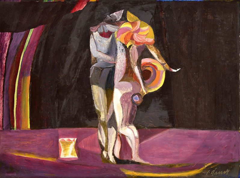 € 180,- Rodina komediantov. 1960. Olej na kartóne. 29 x 24 cm. (101. zimná aukcia výtvarných diel a starožitností, 06.12.2011)