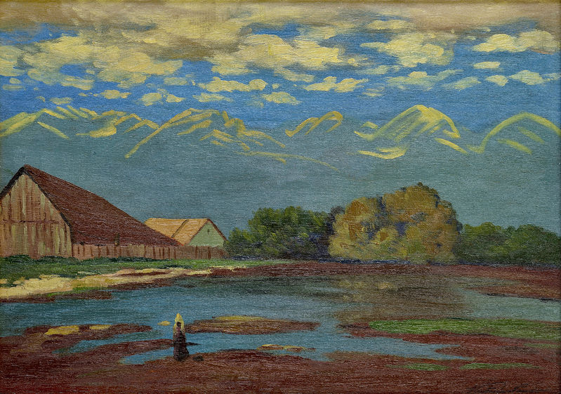 € 6 800,- Západ slnka v Tatrách. Okolo 1905. 80 x 100 cm. (101. zimná aukcia výtvarných diel a starožitností, 06.12.2011)