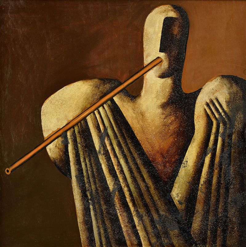 € 9 128,33,- Tri fujary. 1981. Olej, kombinácia techník na preglejke. 114 x 90 cm. (53. zimná aukcia, 30. 11. 2004)