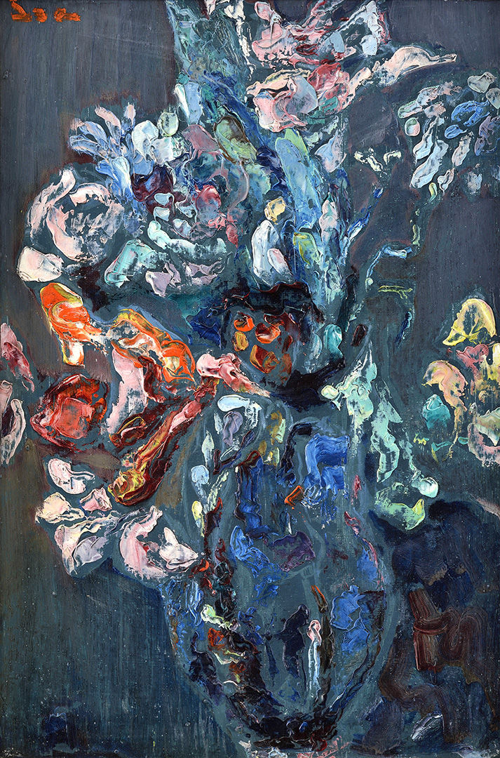 € 2 300,- Kytica cyklámenov. Okolo 1975-80. Olej na kartóne. 88 x 64 cm. (98. letná aukcia výtvarných diel a starožitností, 07.06.2011)