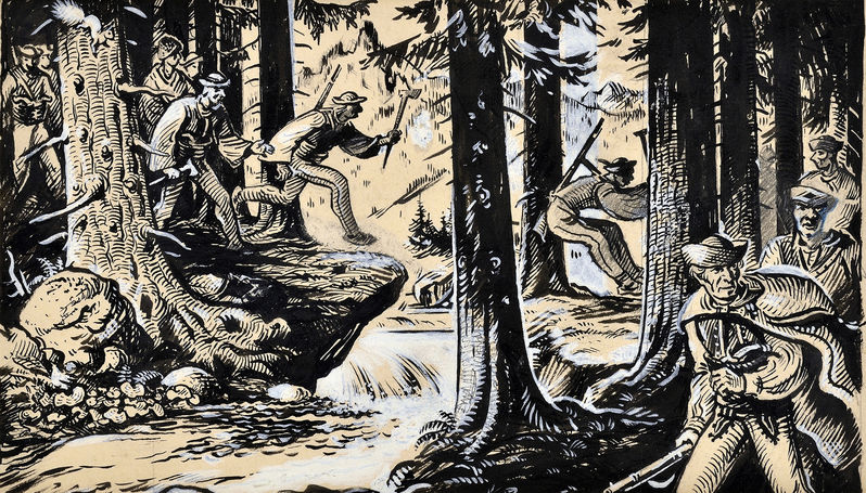€ 497,- Zvážanie zemiakov. 1943. Kresba uhľom na žltom papieri. 39 x 43 cm. (22. jesenná aukcia, 26. 9. 2000)