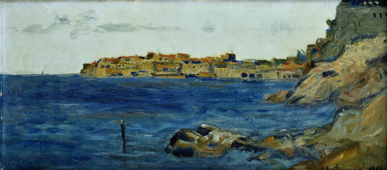 € 829,85,- Pohľad na starú Bratislavu. 1960. Olej na plátne. 45 x 100 cm. (29. zimná aukcia, 5. 12. 2001)