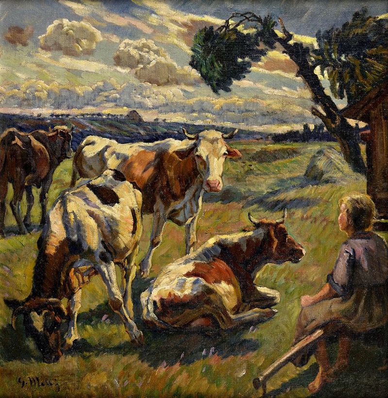 € 18 100,- Cestou na pašu. Okolo 1922-23. Olej na plátne. 70 x 70 cm. (100. večerná aukcia, 15.11.2011)
