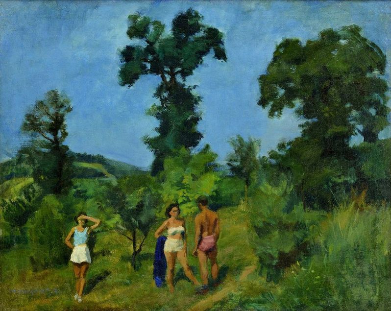 € 21 000,- Anna Lesznai v plenéri.. Okolo 1928.. Olej na plátne. 51 x 44 cm. (116. večerná aukcia , 08.04.2014)