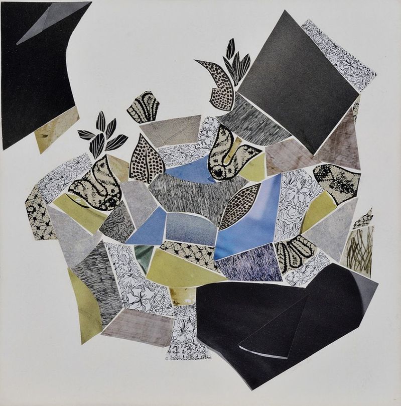 je typická koláž z neskoršej tvorby Ester Šimerovej. Viaceré z týchto prác sa súbežne stávali predlohami pre maliarske práce autorky. Podľa Ľudmily Peterajovej: „ ... v závere dlhodobej tvorivej činnosti ... uzemnila svoju inšpiráciu na blízke okolie. Výhľad z ateliérového obloka na náprotivný svah so záhradkami jej poskytol motívy pre „záhrady“ s lakonicky stručnými prozaickými epitetami ako „opustená“, „nočná“, „jesenná“, „jarná“, „modrá“, „zimná“, „zelená“ záhrada.Pohľady zhora na farebné pôdorysy štvorcových pozemkov malomestských záhradiek ; objav vo svojej podstate banálneho genia loci maliarka povýšila na výtvarný problém....“.