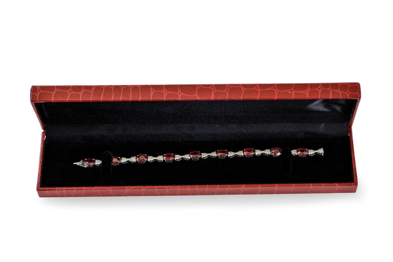Technika: 14 k zlato, diamanty, cca 0, 5 ct. 9 ks rubínov, cca 8, 5 ct.