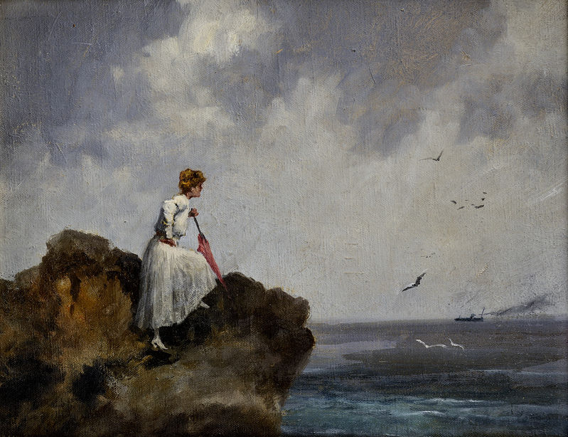€ 4 100,- Dáma v lese. Okolo 1910. Olej na plátne. 50 x 34 cm. (101. zimná aukcia výtvarných diel a starožitností, 06.12.2011)
