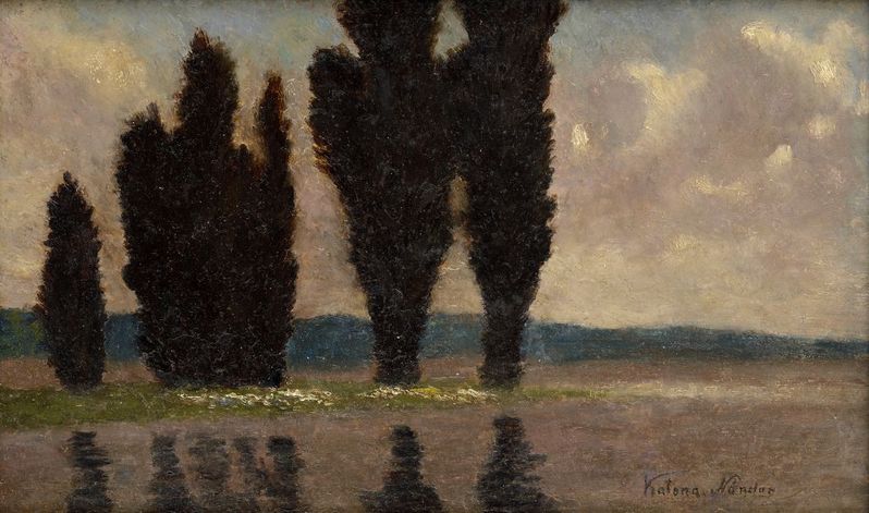 Biografia: Nándor Katona (Kleinberger) po ukončení štúdií žil až takmer do konca storočia v sídle Mednyánszkych v Strážkach. Pod jeho vplyvom sa venoval hlavne krajinomaľbe, ktorá odrážala jeho časté depresívne nálady - nízke zamračené oblohy, večerné daždivé scény, pesimistické nálady súmrakov. Po roztržke s Mednyánszkym sa usadil v Budapešti (1899) a kontaktoval sa s maliarstvom szolnockej kolónie. Pod týmito vplyvmi sa jeho paleta presvetlila, objavili sa slnkom prežiarené luministické plenéry z južného Slovenska, Balatonu a Szolnoku i dovtedy takmer celkom chýbajúce figurálne motívy (plesy, koncerty, slávnosti). Z Budapešti každoročne chodil na Spiš a do Tatier, ktoré sa stali dominujúcim námetom jeho neskorého maliarstva. Narodil sa 12. 9. 1864 v Spišskej Novej Vsi, zomrel 1. 8. 1932 v Budapešti. 1884-90 študoval na Uhorskom kráľovskom učilišti kreslenia podľa modelu v Budapešti (prof. Greguss, Székelyi, Lotz), od 1890 na Académie Julian v Paríži (prof. Constant, Laurens).