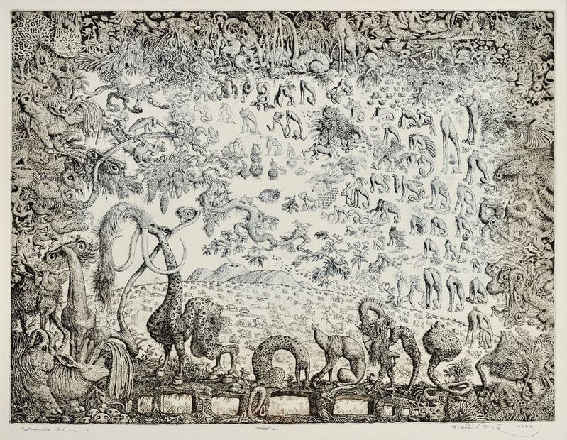 € 500,- Mytológia. 1984. Lept na papieri (autorská tlač). 52 x 64 cm. (93. jesenná aukcia, 5. 10. 2010)