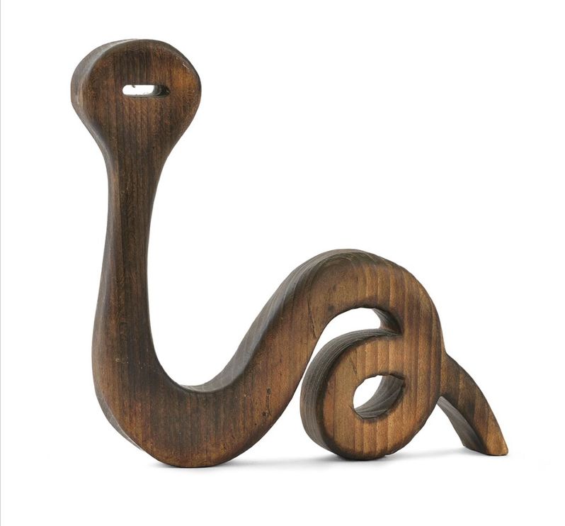 € 7 000,- Mačka. Okolo 1985. Drevo, polychrómia. Výška 107 cm. (131. večerná aukcia, 22.11.2016)