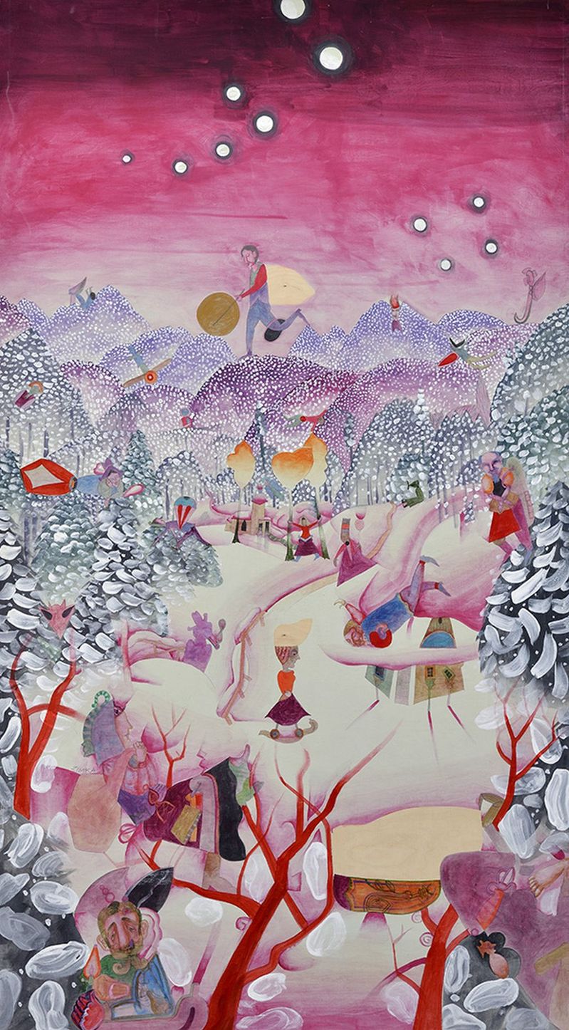 € 900,- Strašidlá Zuzy Čižmárky.. 2009. Tempera na dreve. 47 x 55 cm. (127. jarná aukcia výtvarných diel , 15.03.2016)
