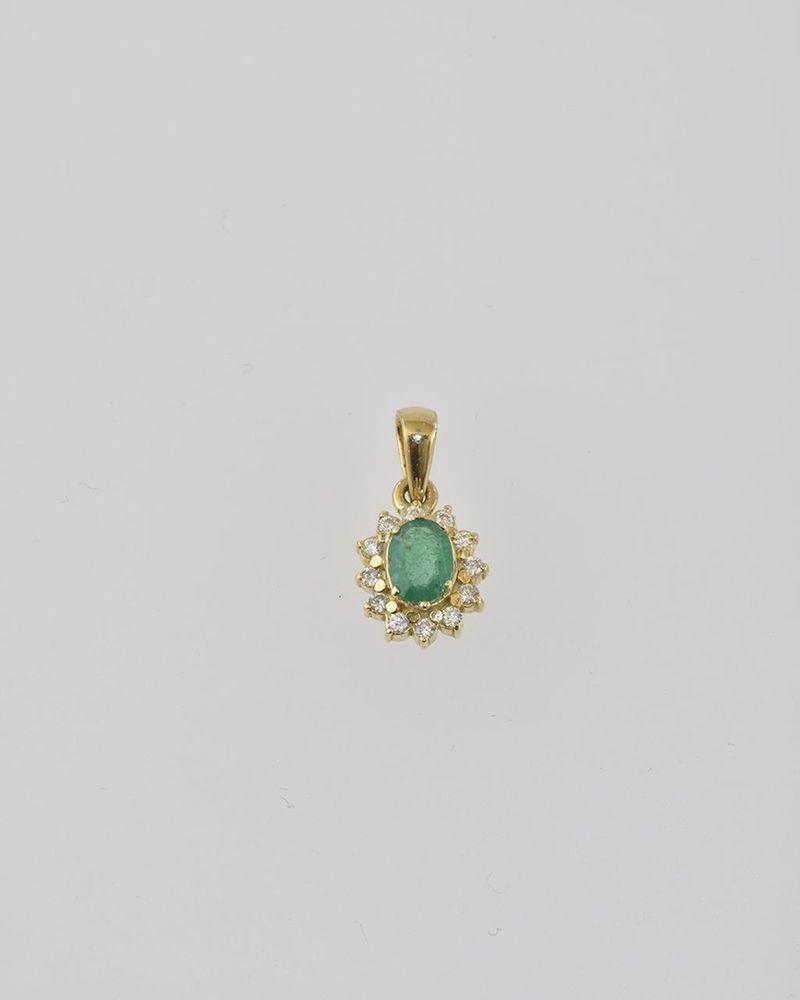 Technika: 18 k žlté zlato, kolumbijský smaragd cca 0,60 ct, diamanty spolu cca 0,25 ct, farba F-G, čistota VS,