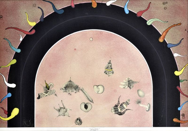 € 550,- Zátišie s kométou. 1986. Farebná liitografia na papieri. 3/6. 58 x 44 cm. (124. jesenná aukcia výtvarných diel, 22.09.2015)