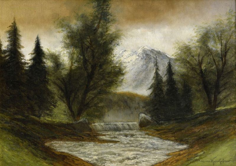 € 2 058,02,- Pri rieke Poprad. Okolo 1910. Olej na plátne. 69 x 75 cm. (77. zimná aukcia, 27. 11. 2007)