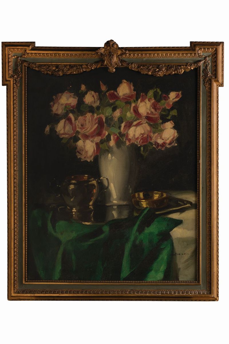 Zátišie s ružami a striebornou cukorničkou