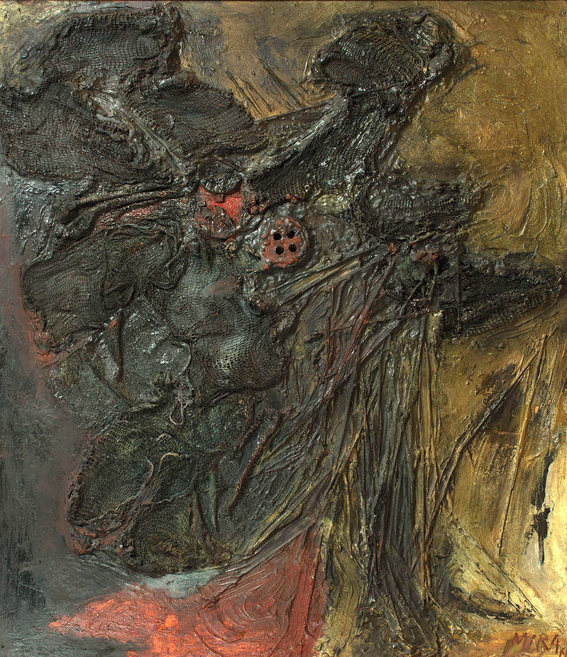 Miry Haberernovej je bezpochyby výnimočným, galerijným dielom autorky, ktorá stále čaká na svoje výraznejšie zhodnotenie – v trhovom, ale aj umenovednom prostredí. Aj napriek faktu, že Haberernová patrí ku kľúčovým postavám nášho umenia druhej polovice 20. storočia, jej tvorba - zvlášť obdobie ovplyvnené popartovou lekciou - ostáva opomenutou, hoci doslova vzrušujúcou súčasťou domáceho príbehu dejín umenia. Zarovno so Stanom Filkom, či Janou Želibskou vytvárala koncom 60. rokov aj Haberenové svoje/svojské obydlia, v ktorých podobne ako jej generační súputníci inscenovala trojdimenzionálne objekty v panelmi, či obrazmi vytýčenom prostredí. Dnes je už zrejmé, že medzinárodné inštitúcie – aj v rámci akéhosi splácania „gendrového dlhu“, sa čoraz častejšie a intenzívnejšie sústreďujú na tvorbu vizuálnych autoriek. Aj v domácom prostredí nájdeme umelkyne, ktoré ostávali roky nespravodlivo prehliadané. Haberernová absolvovala štúdium na VŠVU v Bratislave, s ročným pobytom na Akadémii v Budapešti. Začiatkom 60. rokov bola aktívne účastná na bratislavských Konfrontáciách (1962, 1964, 1965), potom sa načas priklonila k popartovej vizualite, no napriek jednoznačne autentickému prejavu v tomto období ostala jej tvorba aj po roku 1989 bez výraznejšieho zhodnotenia. Až aktivity Richarda Gregora (2013) a neskôr veľká výstava a obsiahla monografia Ivana Jančára (2015) čiastočne upriamili pozornosť na túto autorku. Predkladané dielo pochádza z jej úvodnej, prednostne maliarskej tvorby, v ktorej Haberernová, poučená informelovou lektúrou, predvádza pozoruhodné možnosti Novej figurácie. Už pri vstupe autorky na umeleckú scénu bolo jasne cítiť jej silný zmysel pre priestorové vnímanie, ako aj náznak budúceho vykročenia smerom k soche. Haberernovej maľby zo začiatku 60. rokov sa blížia skoro až k objektom. Autorka ich komponuje asablážovo, častou požíva nájdené predmety. Výrazne pracuje s materiálnou bázou (vrsvenie, prelínanie), vytvára mohutné štruktúry, ktoré tvaruje prednostne antropomorfne. Len náznakovo však odkazuje k ľudksje figúre, či tvári; v maliarskych pastách často aplikuje keramické oko. V roku 1966 ju pri príležitosti jej pražskej výstavy Ľ. Peterajová v texte katalógu označila za antiestétku. Naozaj, jej obrazom dominuje trash estetika, takmer až kollerovská kultúra odpadu... Jej kompozícíe sú až rušivo expresívne. Katalyzujú podivný pocit zo 60. rokov minulého storočia, doby, ktorá sa vyrovnávala s tragédiou druhej svetovej vojny, no nepriamo, aj napriek uvoľnenej nálade a pocitu slobody, už anticipovala tušenie iného veľkého spoločensky-politického konfliku.
