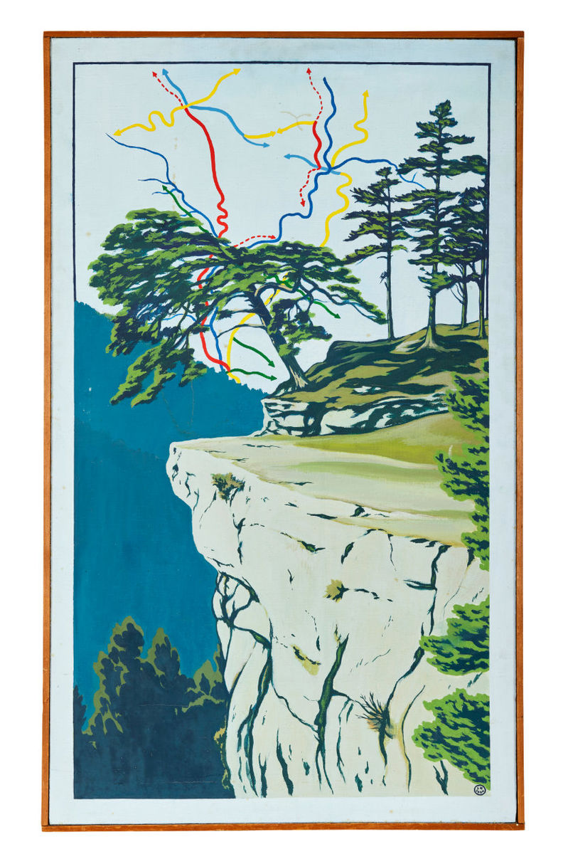 Július Koller, významný priekopník neoavantgardy, je ďalším z predstaviteľov nášho kultúrneho okruhu, ktorého žitá a umelecká realita permanentne prerastali do jedného kultúrneho celku. Jeho dielo, západným okruhom dnes všeobecne akceptované, predstavuje jedno z najsústredenejších a najkonzekventnejších autorských programov európskeho umenia po roku 1960. Už počas štúdia smerovala Kollerova výtvarná prax k prekračovaniu oficiálnych bariér – organizoval experimentálne výstavy a svojou aktivitou sa rýchlo ocitol mimo bežnej umeleckej praxe. Napriek radikálnemu odklonu od tradičného pojmu umenia pôsobí Koller od 60. rokov minulého storočia aj v predajniach umeleckých artefaktov Dielo. Tento oficiálny distribučný kanál pravidelne a programovo využíval ako jediný z predstaviteľov progresívneho umenia. Pre štátne galérie, ktoré väčšina alternatívnej scény s pohŕdaním ignorovala, vytváral špecifické diela „banálneho“ realizmu – pohľady na Bratislavu, Vysoké Tatry a pod. Detailnejší pohľad na Kollerove oleje vytvárané pre Dielo odhalí drobné detaily (otáznik na jednej z fasád bratislavských domov; hodiny, ktoré na Michalskej veži ukazujú o päť minút dvanásť; mraky nad Michalskou vežou pripomínajúce lietajúce taniere; doslovne maľovaná pasparta). Tieto drobné kollerovské stopy (vtipy) odkazujú skôr na premyslenú, subverzívnu autorskú stratégiu či dokonca inštitucionálnu kritiku namierenú takpovediac proti sebe samému“ (Pokorný). Predkladané dielo Slovenský raj (1980) spodobuje Tomášovský výhľad – skalnatý výstupok, ktorý poskytuje najkrajší výhľad na celý národný park. Natáčalo sa tu množstvo filmov, skala slúži aj ako cvičný terén pre horolezcov. Koller opäť pracuje so všeobecne známym, až ikonickým motívom. Táto stratégia – ponúkať publiku to, čo k nemu bude prehovárať jasnou rečou – nič nemení na atraktivite a kvalite prítomnej maľby. Naopak, môžeme ju vnímať ako špecifický, takmer až warholovský variant popartu na slovenskú nôtu. Zadný plán je v zásade typicky kollerovský – s utajeným významom. Ostáva len tipovať, či ide o citáciu z dobovej mapy prístupových trás, alebo o nepriamu komunikáciu s Petrom Bartošom a jeho nadčasovým vznikom maľby (žltá, modrá, červená). Pozoruhodný je aj umelcov výber vertikálnej kompozície (inšpirácia japonskou krajinomaľbou) pre spodobenie prírodného rámca. (NG)