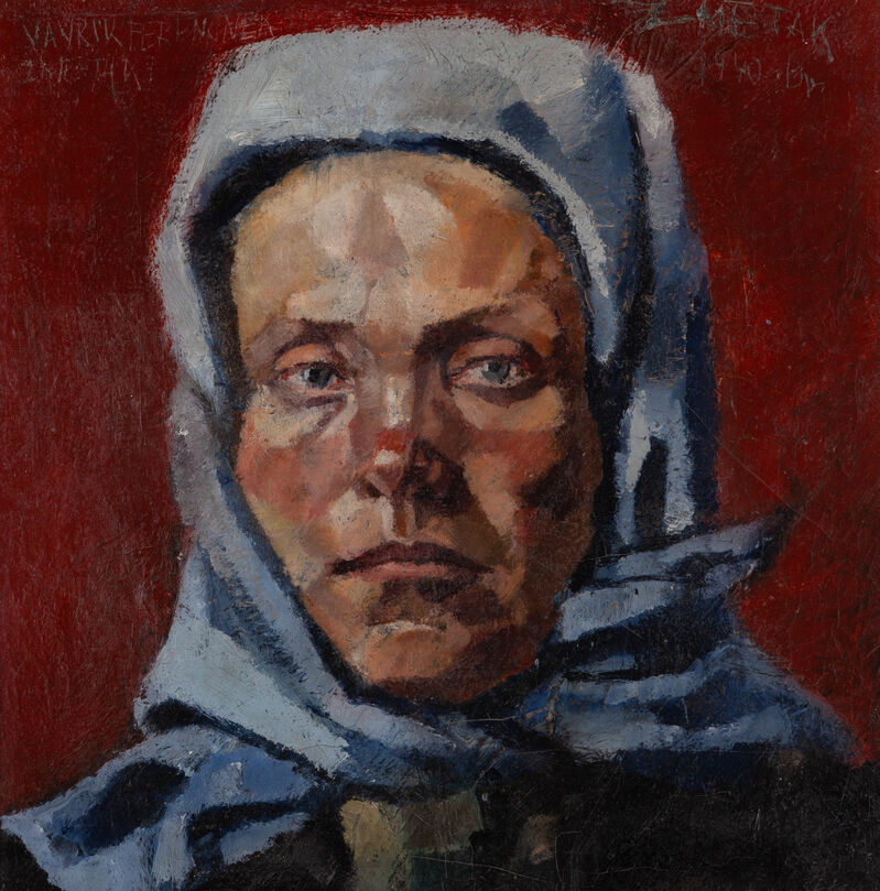Význam Ernesta Zmetáka netkvie len v nespochybniteľnej kvalite jeho diela, ale aj v umelcovom nezastupiteľnom kultúrnom prínose, pritom tieto dve kategórie spolu nemusia bezpodmienečne súvisieť, resp. sa podmieňovať (viď. Janko Alexy). Zmeták bol a stále je fascinujúcou osobnosťou, ktorá láka a zároveň vyvoláva rešpekt nabádajúci k poznaniu nielen jeho diela, ale aj širšieho kontextu. Ako inak sa dá pristúpiť k maliarovi, ktorý celý život študoval, cestoval, mal víziu o slušnej a fungujúcej spoločnosti a obdivoval starých majstrov, o ktorých toho veľa vedel. V katalógu ostatnej veľkej výstavy Ernesta Zmetáka v Slovenskej národnej galérii z roku 2011 obaja autori hlavných štúdií – Ján Abelovský i Katarína Bajcurová – končia svoje eseje konštatovaním o etike umeleckého činu, zračiacej sa v estetike Zmetákovej tvorby (u Abelovského konkrétne v autoportrétoch). Zmeták bol rovnako ako jeho tvorba razantný. Stretneme sa dokonca s jeho označením ako „enfant terrible“ slovenskej scény... Tí, čo ho poznali, vedeli, že dokázal byť aj celkom nástojčivý. Taká je aj moja – vlastne jediná – osobná skúsenosť s maestrom. Nástojčivý zvyčajne vo veciach, o ktorých bol úprimne presvedčený, bojujúci za pravdu a proti krivde. Už ako veľmi mladý sa musel konfrontovať s nespravodlivosťou, keď sa krátko pred druhou svetovou vojnou úspešne uchádzal o štúdium na pražskej akadémii. V dôsledku Viedenskej arbitráže bolo jeho rodné mesto Nové Zámky pripojené k Maďarskému kráľovstvu, čím sa jeho vyhliadky na vysokoškolské štúdium značne zhoršili: „Jedine to ma z toho zaujímalo (v mojej zanietenosti za umením), či toto kráľovstvo uzná moje prijatie na školu, alebo nie. Všetko išlo akoby mimo mňa,“ spomínal už ako zrelý umelec. Kráľovstvo nakoniec prijatie uznalo a Zmeták sa dostal na akadémiu do Budapešti, čo malo na jeho život a tvorbu zásadný vplyv. Jeho profesorom, aj keď len na krátky čas, sa stal Vilmos Aba-Novák (1894 – 1941), ktorého „neškrobenosť“ a zároveň vážnosť mu boli sympatické a zrejme sa stali aj istým návodom na vlastný život: „... (Aba-Novák) mal ku všetkým rázny a krátky prejav o povinnosti umelca voči odboru, ktorý si dobrovoľnej zvolil; skrátka, že umenie si vyžaduje aj usilovnosť, pracovitosť, bez čoho je vážne umelecké úsilie vylúčené.“ Značná časť Zmetákovej portrétnej tvorby (vrátane autoportrétov) dostala istý aba-novákovský „šmrnc“. Vlastnú výraznú koncepciu, postavenú, okrem iného, aj na umeleckohistorických toposoch, doplnil o štýlové variácie prevzaté práve od svojho učiteľa. Predkladaný Portrét ženy v modrej šatke z roku 1940 je esenciou ranej Zmetákovej tvorby. Markantné ťahy štetcom, analytické priblíženie tváre a silná kovová klasicizujúca estetika len podčiarkujú správnosť – aj keď nie Zmetákovho vlastného – rozhodnutia študovať v Budapešti. Oproti pastelovo pôsobiacim a kvetinami posiatym portrétom Willyho Nowaka, do ateliéru ktorého bol prihlásený, našiel v dielach Abu-Nováka partnera na dialóg a potvrdenie oprávnenosti a opodstatnenosti vlastnej umeleckej existencie. Nie je veľa takýchto diel a sám umelec si uvedomoval ich kľúčový charakter pre svoj život (nielen tvorbu). V staršom veku dokonca vlastné včasnejšie práce zbieral, rovnako ako diela obdivovaného Abu-Nováka. Komorné, no svojím charakterom monumentálne dielo je tak rovnako ako celá Zmetákova tvorba „na prvý pohľad jedným z mála domácich príkladov prirodzeného, maliarsky svojbytného európanstva“.JB