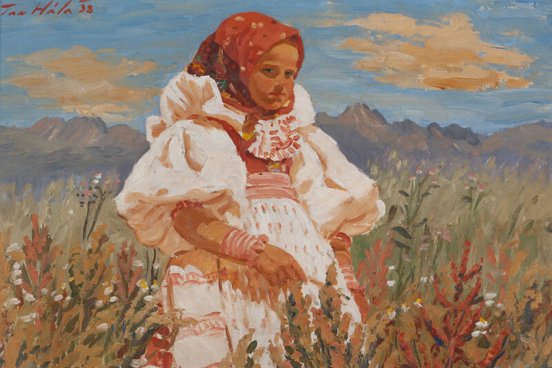 Kompozícia zaliata slnkom prežila v dvoch spríbuznených rodinách ostatných 85 rokov a stala sa základom priateľstva medzi nimi a umelcom. Tento vzťah dokladá pomerne čulá korešpondencia, ktorej koniec predstavuje ďakovný telegram za prejavenie sústrasti po Hálovej smrti. Kontakty maliara so záujemcami o jeho dielo možno chápať aj ako príklad pozitívnej obchodnej stratégie, umelec dokonca prejaví náklonnosť ku „klientovi“ aj zľavou z ceny diela (list z 22. 7. 1940) a vyjadrením spolupatričnosti v zložitej situácii, do ktorej sa v roku 1939 ako cudzí štátny príslušník dostal aj on sám: „... chudák měl také plno starostí sám se sebou. Nyní se mu už daří dobře, má tam krásný byt [v Prahe, pozn. J. B.], ale po starém bydle se mu stýská, jako nám všem. Už jsme si tam všichni u Vás [na Slovensku, pozn. J. B.] zvykli a necítíme se tu tak doma [v Blatné v ČR, pozn. J. B.]. Doufáme ale, že se poměry uklidní a že bude zase lepší.“ Hála sa už v roku 1940 mohol vrátiť do milovaného Važca a ďalej maľovať to, čo mu bolo najbližšie – Važec a jeho obyvateľov a obyvateľky. Predkladané komorné dielo vzniklo v roku 1938 a ak sú pravdivé fotografie zachytávajúce maliara tvoriaceho v prírode, zvečňujúceho dievčatá a chlapcov na pozadí majestátnych Tatier, tak s najväčšou pravdepodobnosťou ide o olejomaľbu vytvorenú mimo ateliéru. Svedčil by o tom aj formát, pričom túto teóriu podporuje aj kadencia ťahov štetca a výrazná prežiarenosť možná len pri priamom dennom svetle. Rýchlosť bravúrnych ťahov hovorí o snahe sprítomniť prchavý moment a jeho ideálne podmienky. Je zaujímavé – a u Hálu vlastne výnimočné – že tento excelentný záznam chvíle je pre túto kompozíciu dôležitejší než samotný kroj či prírodný rámec. Ani ľudovému odevu však nezostáva Hála na tomto obraze nič dlžný – i keď veľkorysými a nespochybniteľnými ťahmi, no stále presne je zachytené dievčatko odeté v sviatočnom úbore. Je to podobné ako na fotografiách Karola Plicku, ktorý – tak ako Hála – dokázal dedinčanov primäť, aby sa obliekli do toho najlepšieho, čo doma majú. Veď napokon pózovať „piktorovi“ či „svetlopiscovi“ bola výnimočná, nevídaná udalosť. V roku vzniku predkladaného obrazu sa v New Yorku konala výstava slovenského umenia, ktorej (ne)úspech nenaplnil očakávania organizátorov ani samotných vystavujúcich umelcov (50 maliarov a sochárov) a dvoch umelkýň. Pre pulzujúcu metropolu oplývajúcu všetkým, čo na Slovensku vtedy nebolo, museli byť ľudové námety a priam archaický výtvarný prejav prežitkom. Svojho Rozsievača v Amerike predstavil aj Jan Hála – ako inak, v sviatočnom kroji... „Aj vďaka tomu sa svet dozvedel o nás a nedíval sa na nás ako na totálnych chudákov v zašmudlaných špinavých súkenných nohaviciach a vychodených krpcoch, ale pekne oblečených.“ (Zora Mintalová Zubercová)