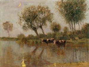 52 000,- Sk Napájanie kráv. Okolo 1920. Olej na plátne. 60 x 80 cm. (47. jarná aukcia, 9. 3. 2004)