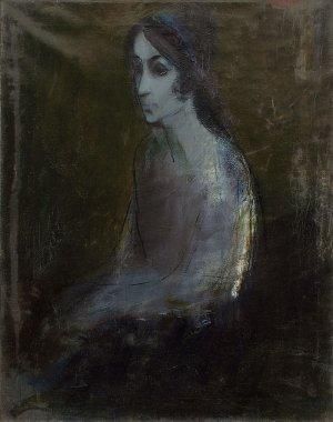 Popis: „Melancholická žena“ je zberateľsky výnimočným dielom Dezidera Millyho (nie nepodobným olejomaľbe „Žena v zelenom“, ktorá bola opakovane vynikajúco dražená na aukciách SOGY). Obraz reprezentuje absolútnu kvalitu umelcovej ranej tvorby – možno ho klasifikovať ako záver ikonografickej línie tematizujúcej motív „blúdiacej ženy“. Bol bezpochyby prevzatý z dobového maliarstva Jana Zrzavého. Od neho pochádzajú i Millyho sujety blúdiacich zástupov ľudí neurčitou, fantazijnou krajinou ako zašifrovaný odkaz k dobovému politickému dianiu (Blúdiaca, 1942; Hlava, 1944). Na rozdiel od podobných riešení Mudrocha a Matejku, komponujúcich neskutočnú figúru na neutrálne pozadie (aby jej izolovanosť bola výrazná), však Milly zapája postavu do prírodného rámca. Preľnutie ľudského a prírodného (Jazdci, 1942; Ľudia z hôr, 1947) je dôležitým spresnením generačne príznačného inotaja: zvestuje Millyho harmonizačný, nadčasový zástoj. Svoju pravú podobu dostal potom v lyrickej melanchólii štylizovaných krajín maliarovho rodiska.