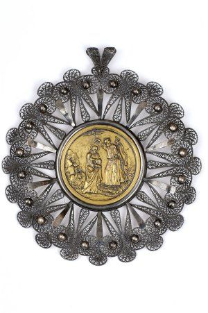 Technika: filigránová obruba, v strede s plastickou medailou krstu