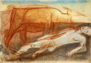 28 000,- Sk Sediaci akt. 1923. Kresba uhľom na papieri. 25 x 36 cm. (39. letná aukcia, 27. 5. 2003)