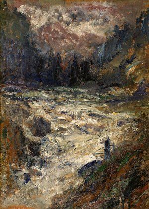 210 000,- Sk Vodopád. Okolo 1900. Olej na plátne. 230 x 161 cm. (34. jesenná aukcia, 1. 10. 2002)