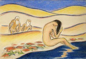Popis: Predkladaný pastel Zola Palugyaya „Po kúpaní – Zuzana a starci“ bol vydražený na 42. aukcii SOGY za 62 000,- Sk. Vynikajúco dokladá secesnú, symbolistickú líniu tvorby maliara. Tento priam ukážkový meditatívny senzualista upieral svoju ctižiadosť k lyrickým možnostiam secesno-expresívneho štýlového základu (najmä v akvareloch, v ktorých farba preberá znakovú, vysvetľujúcu funkciu lineárnej kresbovej osnovy). Vplývali na neho rôzne podoby dobového stredoeurópskeho symbolizmu: v Krakove to bolo dielo akvarelistu Falsta (roku 1920 dokonca vystavoval so spolkom Sztuka), pri pobyte v Maďarsku zasa umenie secesných maliarov kolónie v Gődölő. Secesná štylistika, literárny podtext maliarstva začiatkov pretrvá až do predčasného záveru Palugyayho diela -- v panteistických obrazoch búrlivo klíčiacej prírody, v baladických víziách harmonickej, priam rajskej súnáležitosti rovnako ľudského a prírodného, ako civilizačného a vidieckeho (Modrý vták, 1926; Ahasver, 1927; Vdovy, 1928; Krajina s kvetmi -- Nirvána, 1930; Pri vode, 1931; Dievča v bielom s továrenskými komínmi a kvetmi, 1932; Pri potoku, 1932; Osud, 1932; Symbolika I--X, 1932; Jarná melódia, 1932).