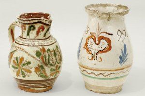 Technika: pálená glazovaná hlina na bielom podklade