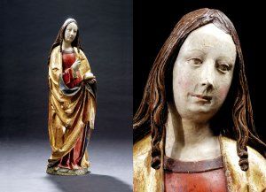 Popis: lipové (?) drevo stará polychrómia, čiastočne prerezaná, premaľovaná, nesie stopy lokálneho poškodenia Svätá Alžbeta - patrónka charity, v ľavej ruke drží bochník chleba (sekundárny doplnok) plastika je zo zadnej strany vydlabaná (odstránené jadro)