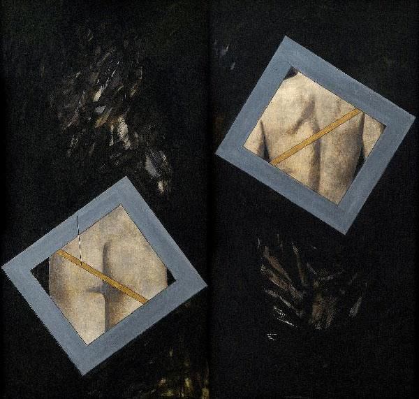 96 000,- Sk Dve. 1990. Kombinovaná technika. 200 x 150 cm. (56. aukcia súčasného slovenského umenia, 10. 5. 2005)