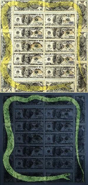 Technika: fosforový akryl, kresba perom, tlač na papieri a plátne