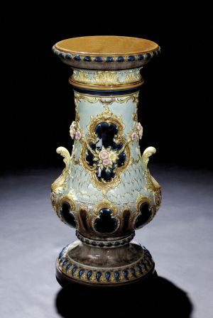 guľatý, plasticky modelovaný stĺp s florálnym motívom