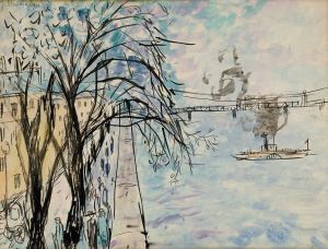 20 000,- Sk Krajina s brezami. 1972. Kombinovaná technika. 57 x 40 cm. (6. letná aukcia, 26. 5. 1998)