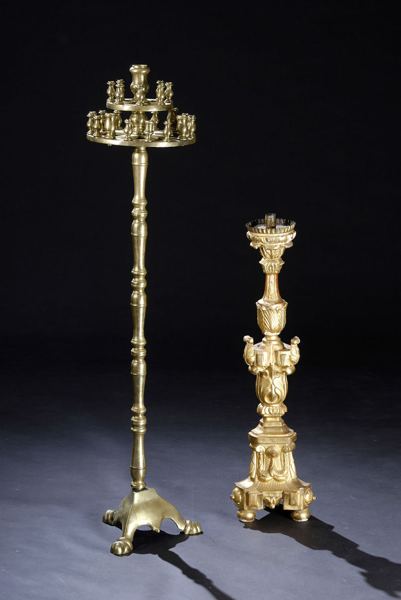 Popis: polovica 18. storočiaRakúsko – Uhorskotrianglový svietnik z lipového dreva, zlatá polychrómia(čiastočne uvoľnená)