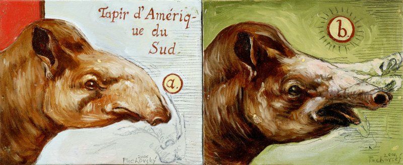 Biografia: Juraj Puchovský sa vo svojej tvorbe venuje skurilnému sujetu zvierat. Viditeľne sa pritom dovoláva prinajmenej tradície klasického expresionizmu, ktorý kládol do protikladu kultúru a civilizáciu, "čistú" prírodu a "nečisté" ľudské spoločenské správanie sa. Zdá sa však, že dôležitejšie pre autora sú literárne inšpirácie, najmä magický svet modernej latinsko-americkej literatúry, v ktorej ľudské a zvieracie fenomény vzájomne koexistujú, prelínajú sa a životodarne sa doplňujú. Autorove diela teda nie sú klasickou spoločenskou kritikou, postavenou na porovnávaní analogických vlastností ľudí a zvierat, skôr predstavou akéhosi pradávneho, prednatálneho, "rajského" spolunažívania človeka a jeho sveta. Juraj Puchovský sa narodil 17. 8. 1978 v Bratislave. 1992-96 študoval na Škole úžitkového výtvarníctva v Bratislave. 1997-2003 na Vysokej škole výtvarných umení v Bratislave (ateliér voľnej tvorby a knižnej ilustrácie prof. Kállaya). 2006 sa predstavil samostatnou výstavou v Galérii mesta Bratislavy. 2007 vystavoval spolu s Igorom Ondrušom v galérii M++.