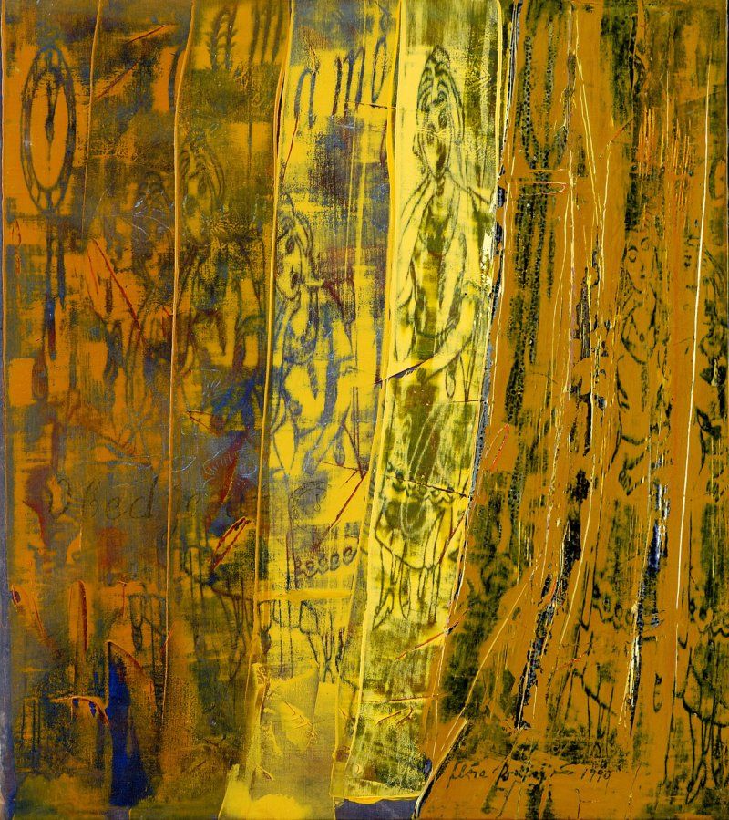 39 000,- Sk Netušené odhalenie (pocta Chagallovi). 1991. Akryl na plátne. 90 x 80 cm. (56. aukcia súčasného slovenského umenia, 10. 5. 2005)