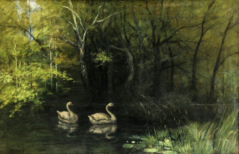 30 490,- EUR Člnkujúca sa žena na jazierku s ľabuťami. Olej na kartóne, 120 x 150 cm. Paríž 2001