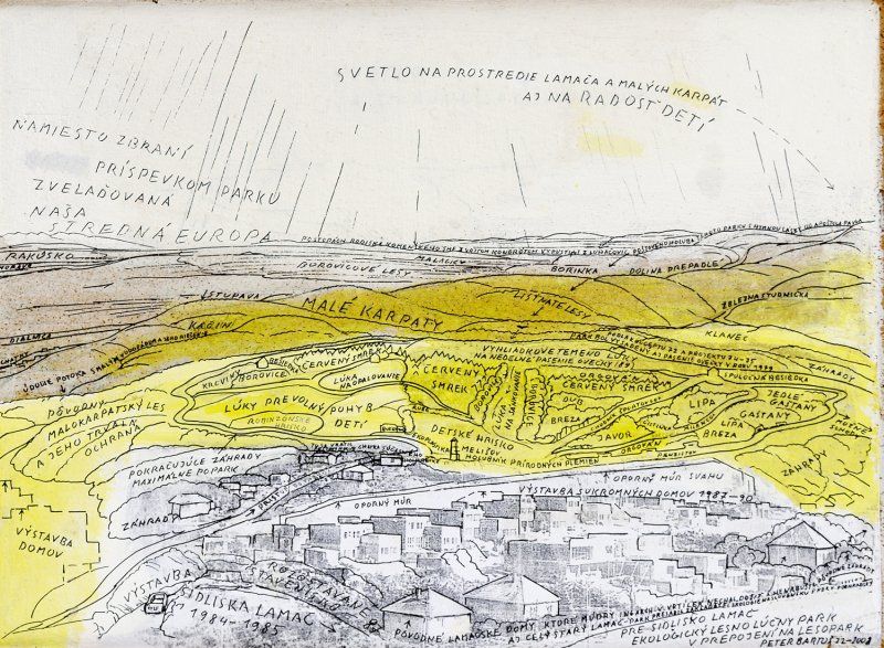 20 000,- Sk Labyrint sveta po rok 2001. Okolo 1988. Olej na plátne. 95,5 x 75,5 cm. (26. letná aukcia, 5. 6. 2001)