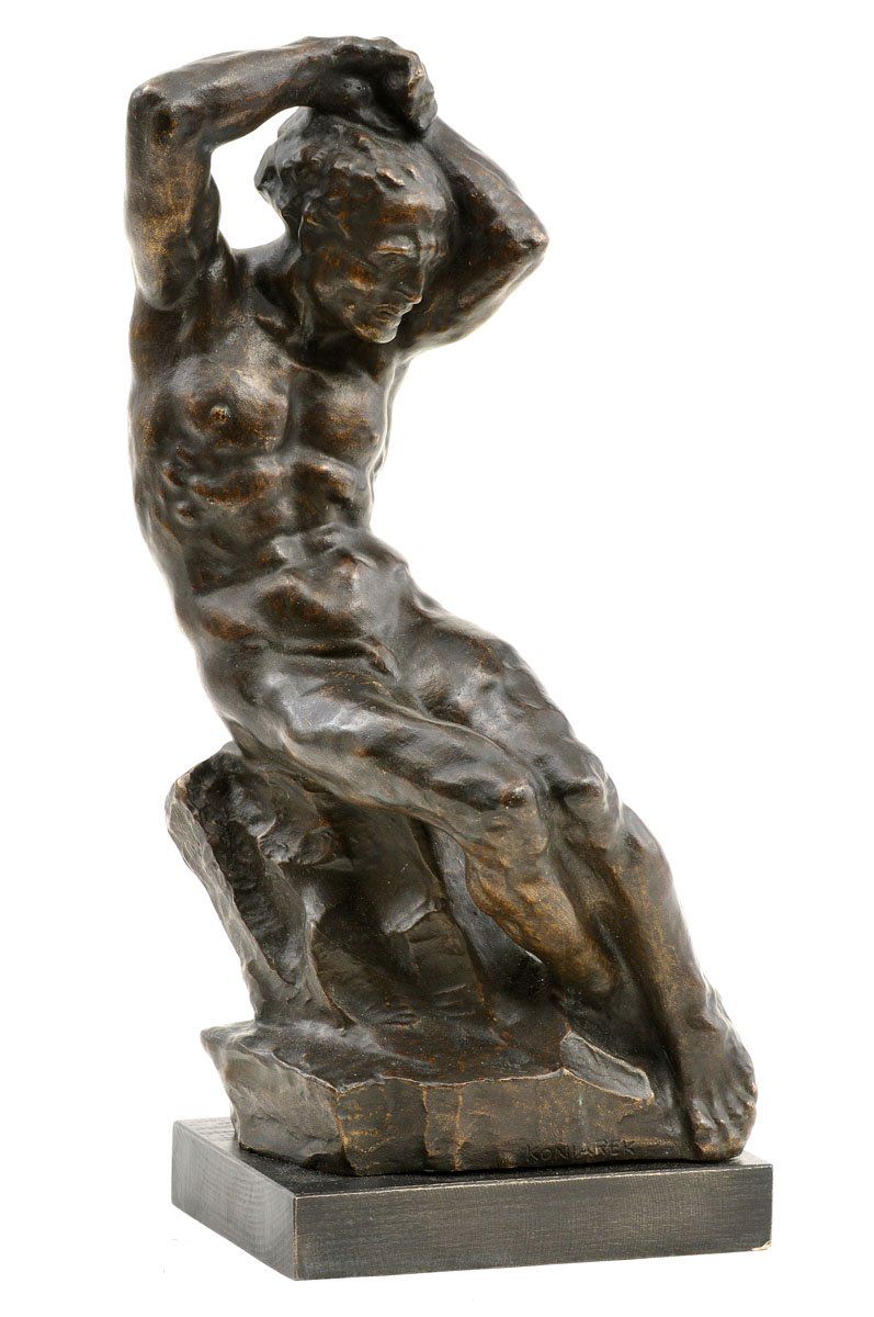 31 000,- Sk Sediaci mužský akt. Pred 1950. Bronz. Výška 32 cm. (55. jarná aukcia, 15. 3. 2005)