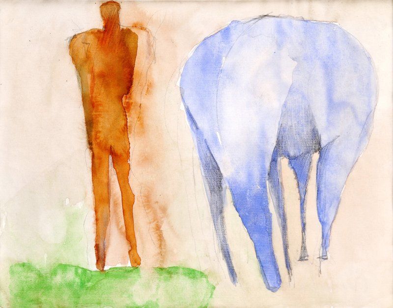 36 000,- Sk Dvaja. Okolo 1980. Akvarel, gvaš na papieri. 45 x 56 cm. (58. letná aukcia, 14. 6. 2005)