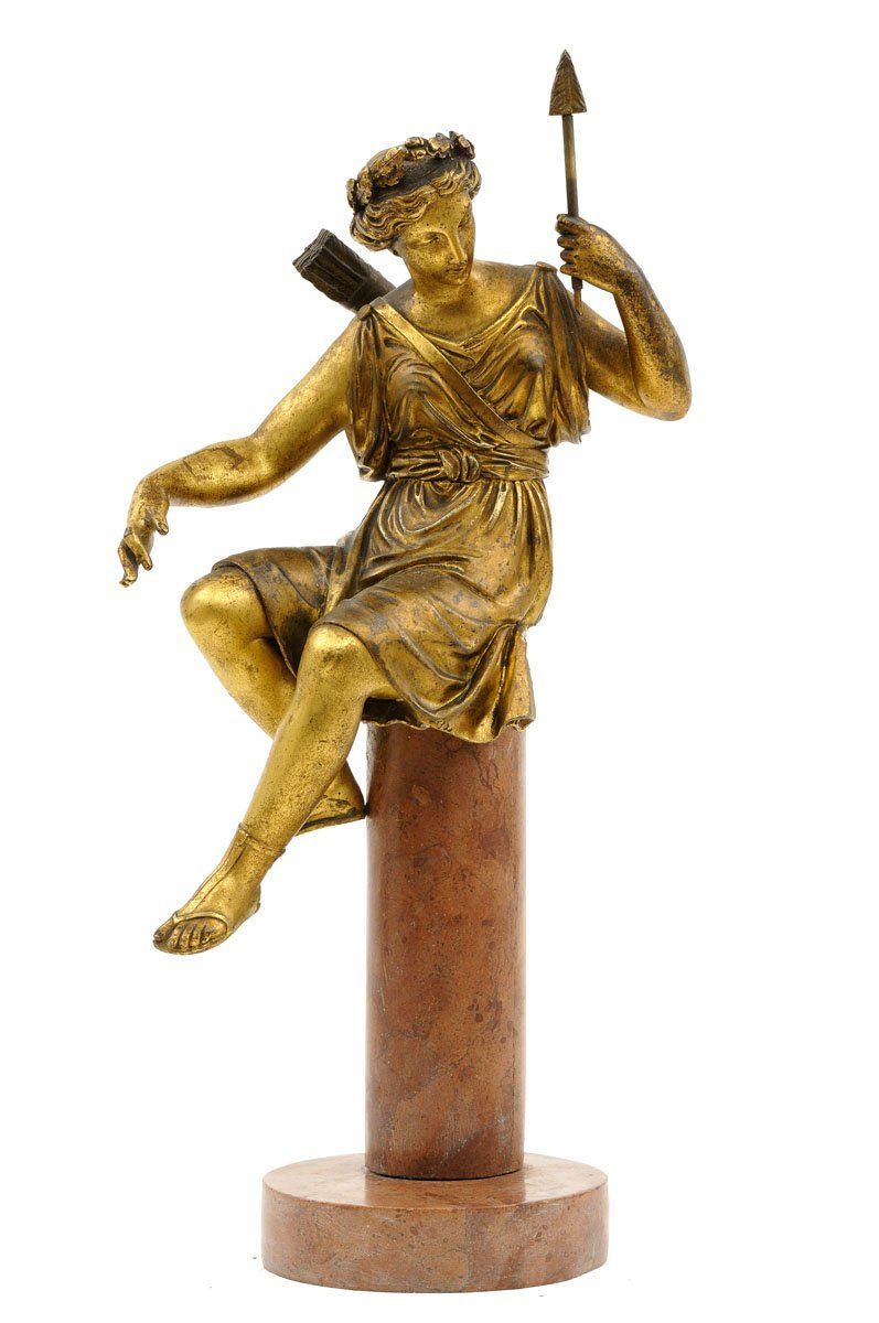 Technika: ohňom pozlátený kov, mramorový podstavec