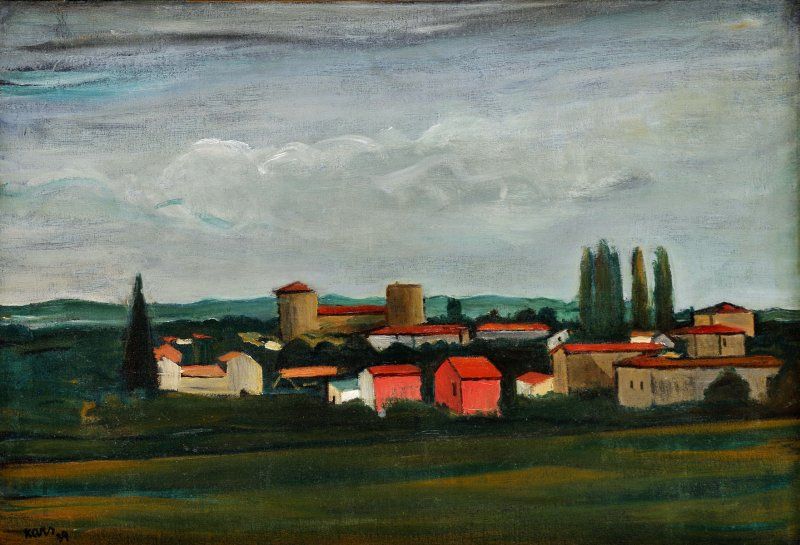 Popis: Dôležitý predstaviteľ českej medzivojnovej avantgardy Jiří (Georges) Kars (vlastným menom Karpeles) sa narodil 2. 5. 1882 v Kralupoch nad Vltavou, zomrel 6. 2. 1945 v Ženeve. Po štúdiách na gymnáziu, pokračoval v 1899-1905 v Mníchove na Akadémii výtvarných umení u prof. F. Stucka. Po ročnom pobyte v Prahe odišiel 1906-7 najprv do Paríža, potom do Španielska, na rok sa opäť vrátil do Prahy, ale 1908 znovu odišiel do Paríža a stal sa naturalizovaným Francúzom. Za druhej svetovej vojny sa uchýlil do Švajčiarska a nakoniec zvolil dobrovolný odchod zo života. Karsa upútali francúzski impresionisti, Cezánne a van Gogh. Do 1908 sú Karsove začiatky impresionistické, neskôr ho skúmanie prostriedkov intenzívnejšej výrazovosti priviedlo k syntéze línie a farby, viazaných na prírodný model, ale riadených rytmom a logikou osobného štýlu. Mnohokrát obmieňaný motív ženskej postavy ustúpil v štyridsiatych rokoch krajinám a obrazom s deťmi. Z literatúry: Encyklopedie českého výtvarného umění, Praha 1975, str. 206.