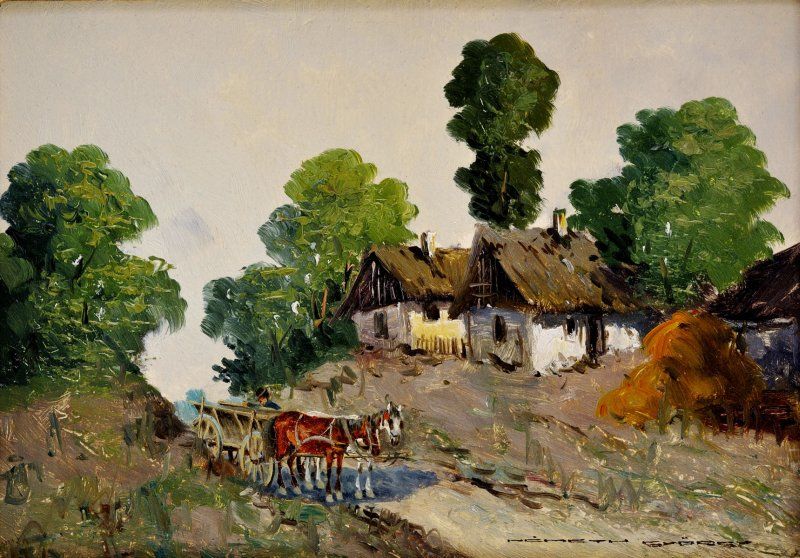 18 000,- Sk S povozom I.. Okolo 1930. Olej na kartóne. 10 x 15 cm. (83. zimná aukcia, 2. 12. 2008)