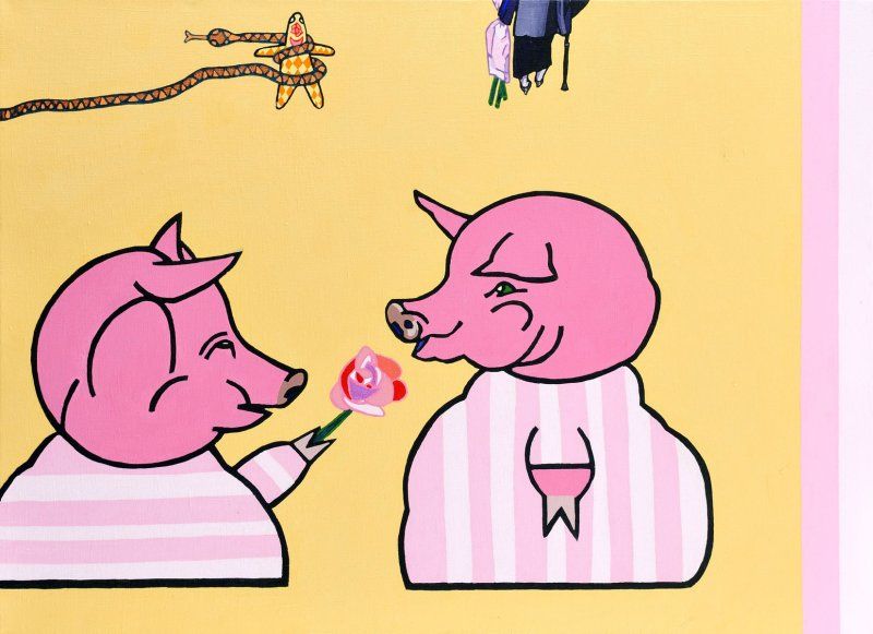 12 000,- Sk Love Song 30. Akryl na plátne. 100 x 145 cm. (64. aukcia súčasného slovenského umenia, 16. 5. 2006)