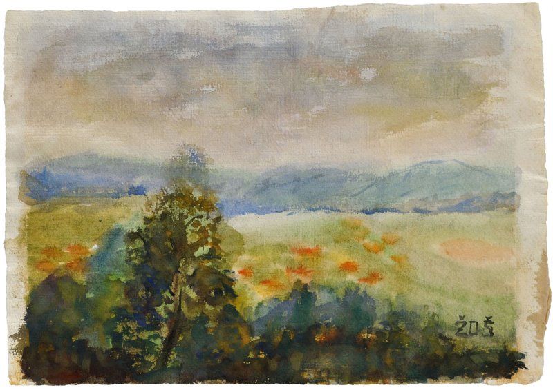 Dva stohy senaOsamelý strom v krajineVáza s kvetmi na stoleRumovisko