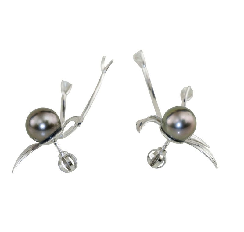 Technika: 14 k biele zlato, 2 ks tahitská perla, 4 ks bril., cca 1ks 0,103 ct